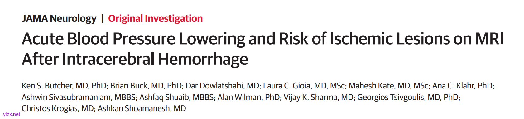 JAMA Neurology:急性血压降低与脑出血后MRI缺血性病变风险的关系