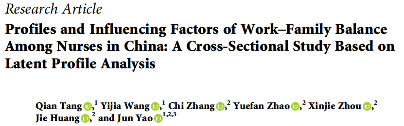 Qian Tang, Yijia Wang, et al. Profiles and Influencing Factors of Work–Family Balance Among Nurses in China: A Cross-Sectional Study Based on Latent Profile Analysis, Journal of Nursing Management, 2025, https://doi.org/10.1155/jonm/8556545.