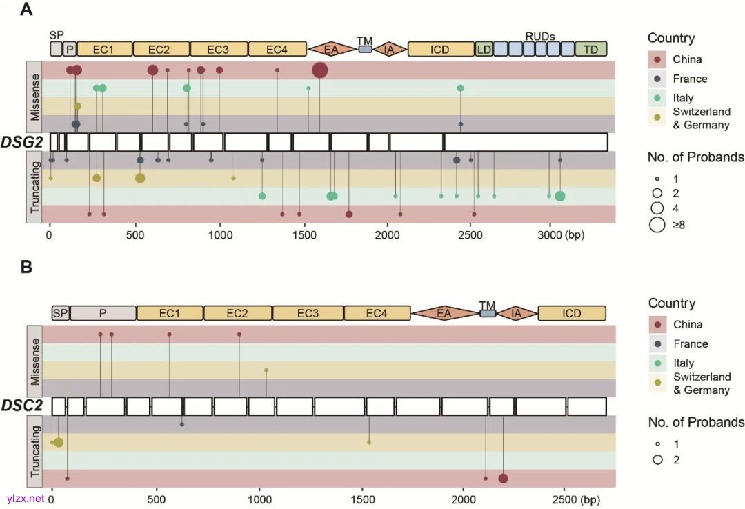 图1:国际多中心队列中DSG2和DSC2致病突变的分布情况