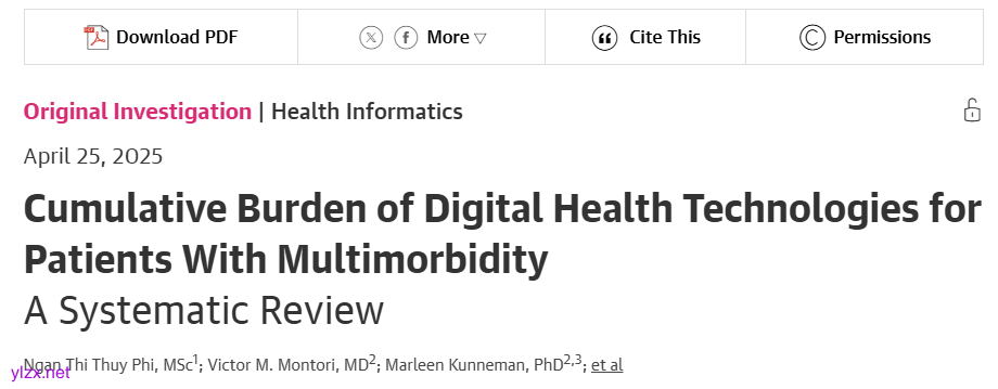 Phi NTT, Montori VM, Kunneman M, Ravaud P, Tran VT. Cumulative Burden of Digital Health Technologies for Patients With Multimorbidity: A Systematic Review. JAMA Netw Open. 2025 Apr 1;8(4):e257288. doi: 10.1001/jamanetworkopen.2025.7288. PMID: 40279126; PMCID: PMC12032558.