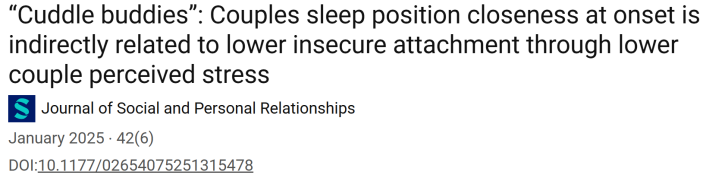 研究者利用在线调查工具,探讨了伴侣入睡时的身体接触、压力水平、依恋安全感及睡眠质量等因素。