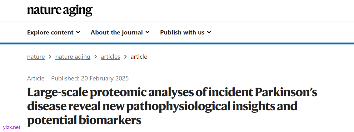 Nat Aging:大规模蛋白质组学分析揭示帕金森病的新病理机制和潜在生物标志物