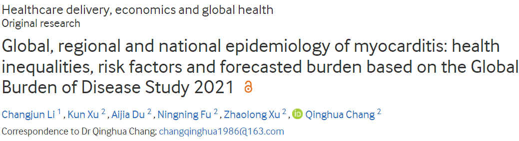 Changjun Li.et al.Global, regional and national epidemiology of myocarditis: health inequalities, risk factors and forecasted burden based on the Global Burden of Disease Study 2021.Heart.2025.https://heart.bmj.com/content/early/2025/04/17/heartjnl-2024-325523