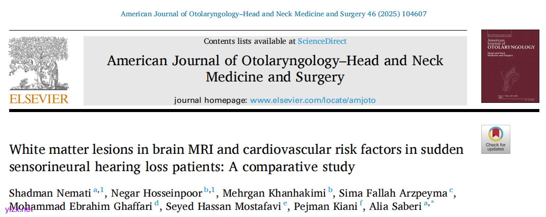 Am J Otolaryngol:突破争议!脑白质病变与突发性感音神经性听力损失的强关联获实证