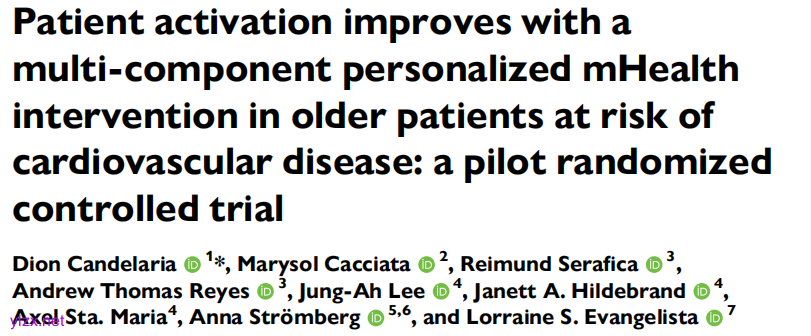 Tingxuan Wang, Haixia Ma, et al, Patient activation improves with a multi-component personalized mHealth intervention in older patients at risk of cardiovascular disease: a pilot randomized controlled trial, International Journal of Nursing Studies, 2025, https://doi.org/10.1016/j.ijnurstu.2025.105037.