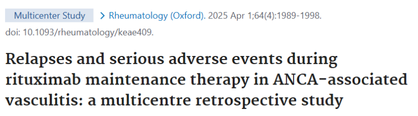 Gialouri CG, Chalkia A, Koutsianas C, Chavatza K, Argyriou E, Panagiotopoulos A, Karamanakos A, Dimouli A, Tsalapaki C, Thomas K, Orfanos P, Lagiou P, Katsikas G, Boki K, Boumpas D, Petras D, Vassilopoulos D. Relapses and serious adverse events during rituximab maintenance therapy in ANCA-associated vasculitis: a multicentre retrospective study. Rheumatology (Oxford). 2025 Apr 1;64(4):1989-1998. doi: 10.1093/rheumatology/keae409. PMID: 39107924; PMCID: PMC11962940.