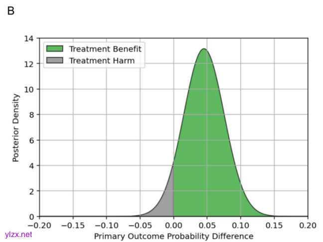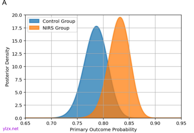 图B. 主要结局概率差异的后验密度分布图(NIRS组 vs. 对照组)