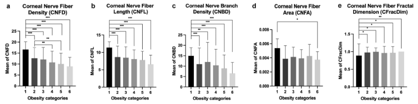 图1:不同身体质量指数(BMI)类别的角膜神经参数亚组分析