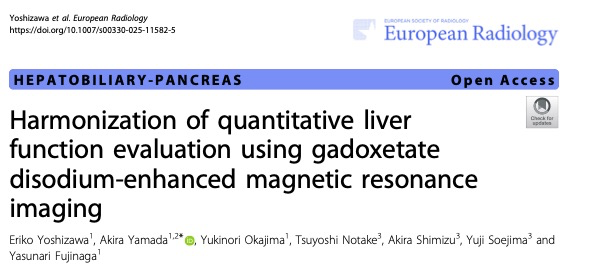 Eriko Yoshizawa,Akira Yamada,Yukinori Okajima,et al.Harmonization of quantitative liver function evaluation using gadoxetate disodium-enhanced magnetic resonance imaging.DOI:10.1007/s00330-025-11582-5