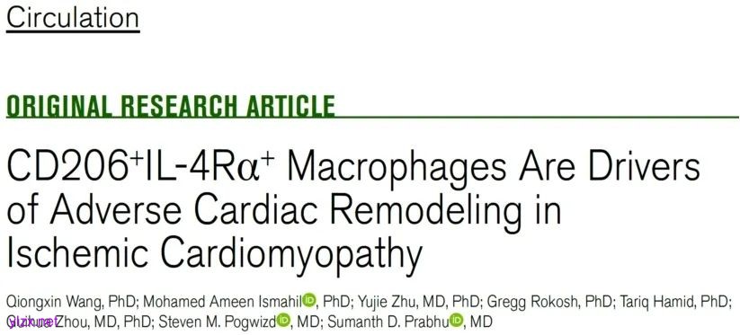 Circulation 武汉大学中南医院王琼昕团队揭示CD206+IL-4Rα+巨噬细胞促进缺血性心肌病左室重构的作用机制