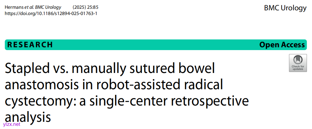 BMC Urol:机器人辅助根治性膀胱切除术中的吻合器技术与手工缝合肠道吻合术对比
