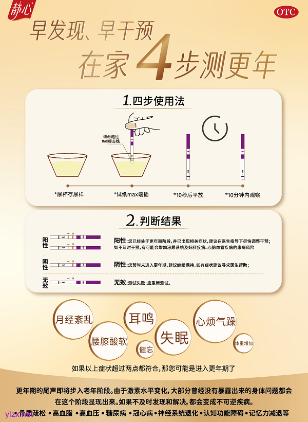 3. 5-10分钟后不雅察成果:若出现两道杠,提示可能进入更年期