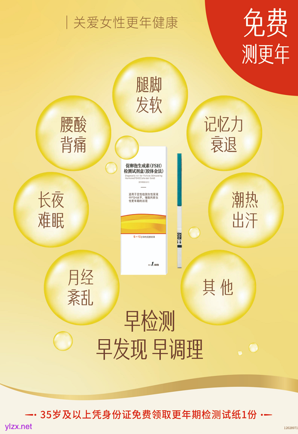 本次免费发放的更年期检测试纸(FSH检测),经由过程检测尿液中促卵泡激素程度,初步断定卵巢功能状况。