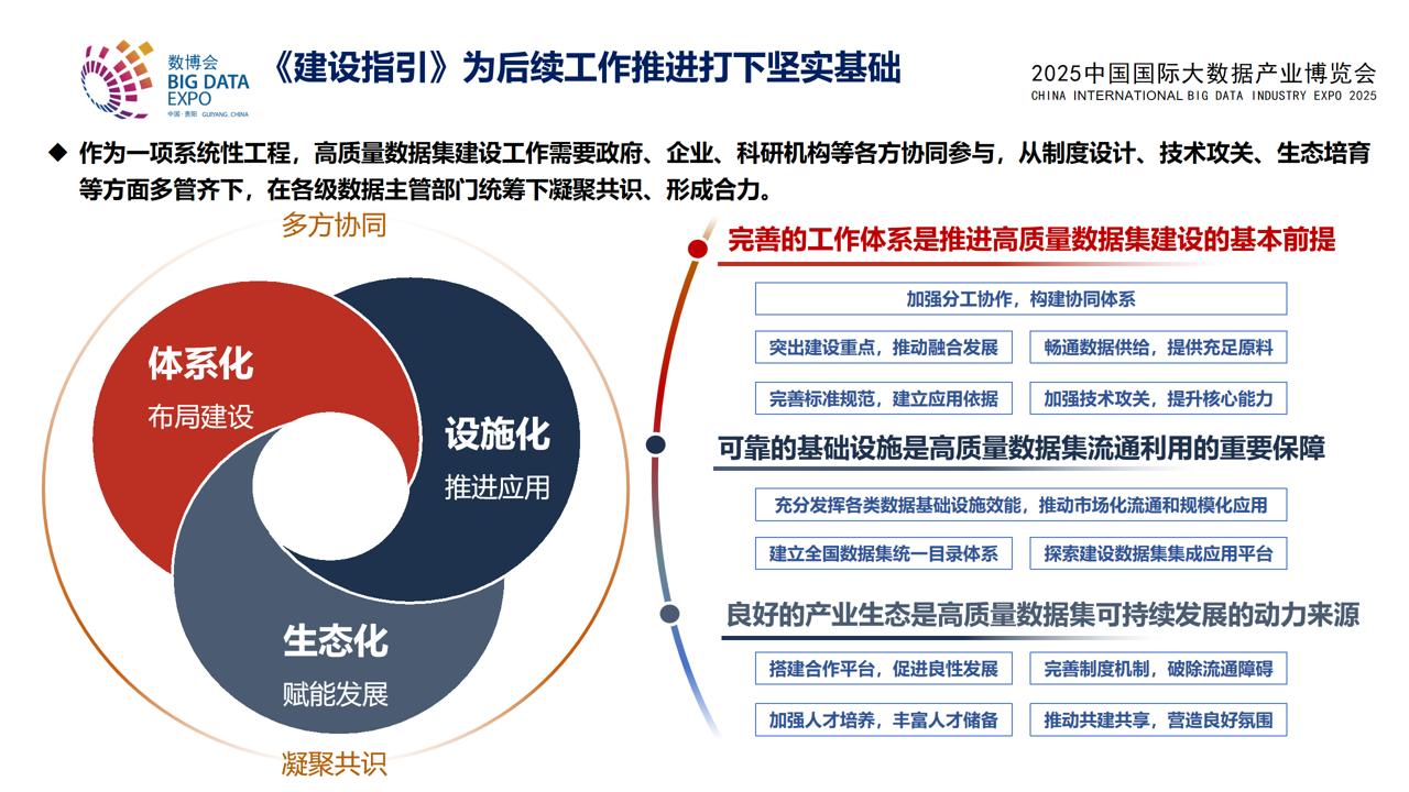 8月28日,在2025中国国际大数据产业博览会“高质量数据集主题交流活动”上,《高质量数据集建设指引》正式发布。