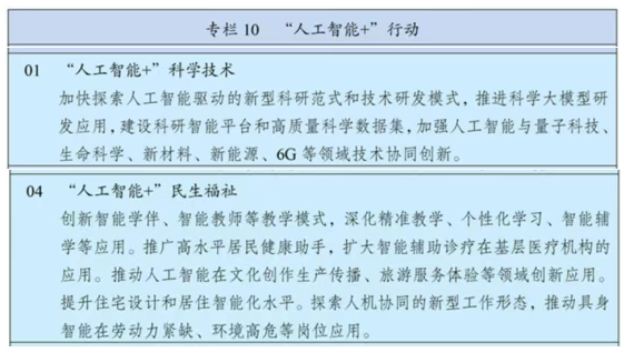 促进人工智能助力教育模式变革,有序推动数智技术在辅助诊疗、精准医疗、健康管理、医保服务、养老助残等场景的应用。