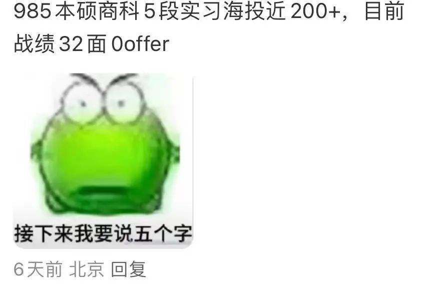 原因是他最近频繁刷到秋招0offer的视频,北大的博士、武大的硕士,高校毕业的应届生们都陷入了找不到工作的困境。