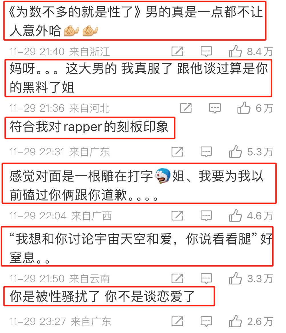 发的歌除了暴露他的人品和加重大家对男rapper的刻板印象,