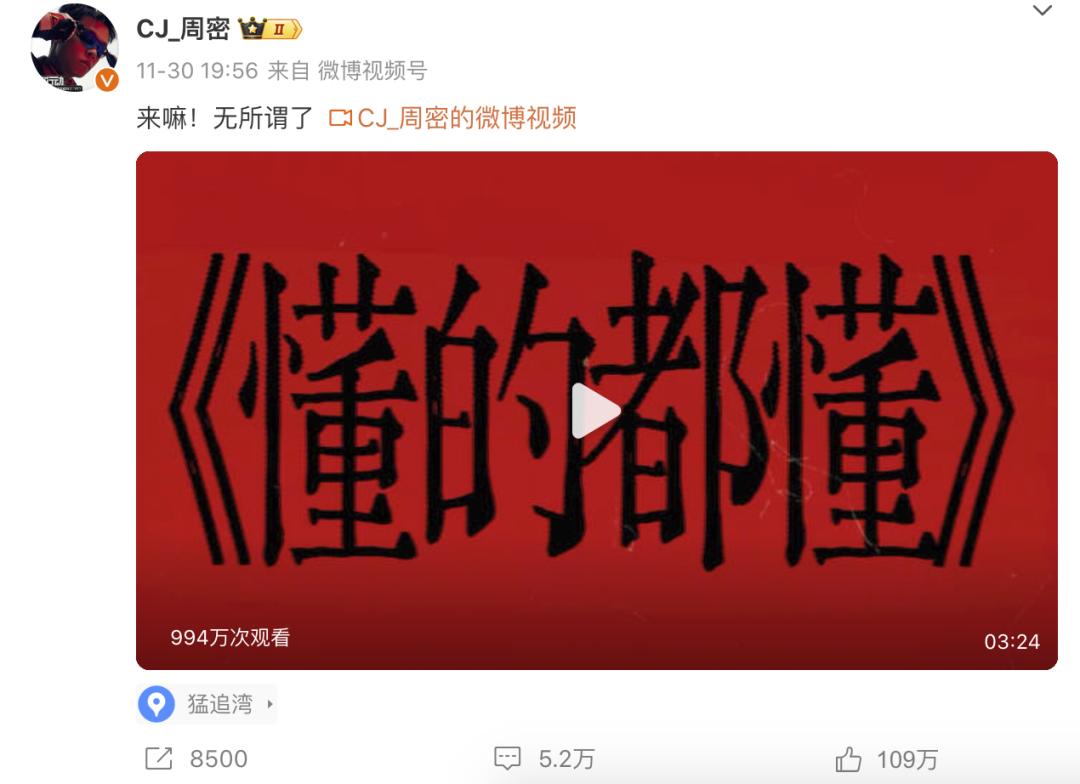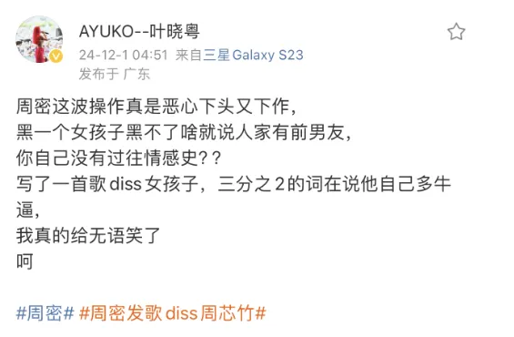 稍晚一点,周密发了一首歌《懂的都懂》,是他专门写来diss周芯竹的⬇️