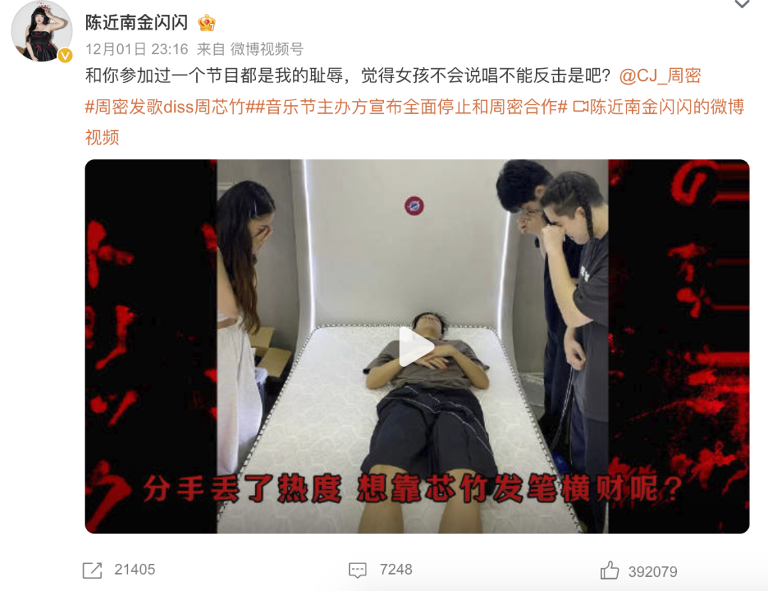 跟周密一起参加过《说唱新世代》的陈近南,更是直接写了首歌回击周密:说跟他参加过一个节目是自己的耻辱。