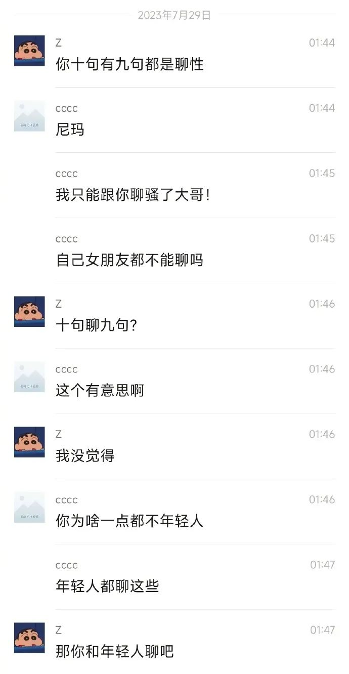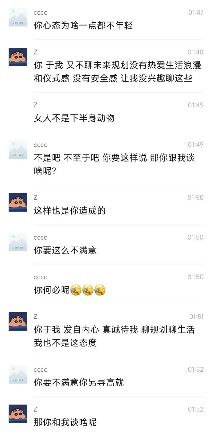 情侣之间打情骂俏在所难免,但周芯竹抗拒的原因在于,对方跟自己缺少未来规划,没有浪漫、仪式感、安全感,十句聊九句都是那档子事,让她没兴趣聊。