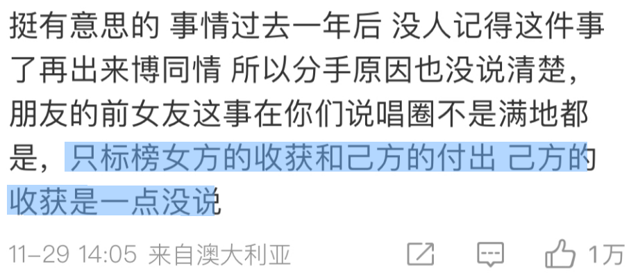 而在他的叙述里,只标榜了女方的收获和自己的付出,自己的收获摘得干干净净,本身就是一种不公。