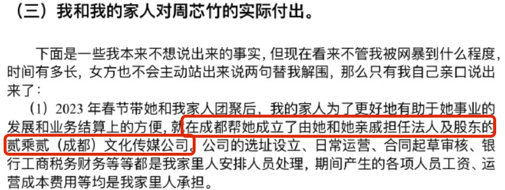 为了方便她的事业发展和业务结算,家人出面帮周芯竹在成都成立了传媒公司,公司从成立到运营产生的费用均由周密家人承担⬇️