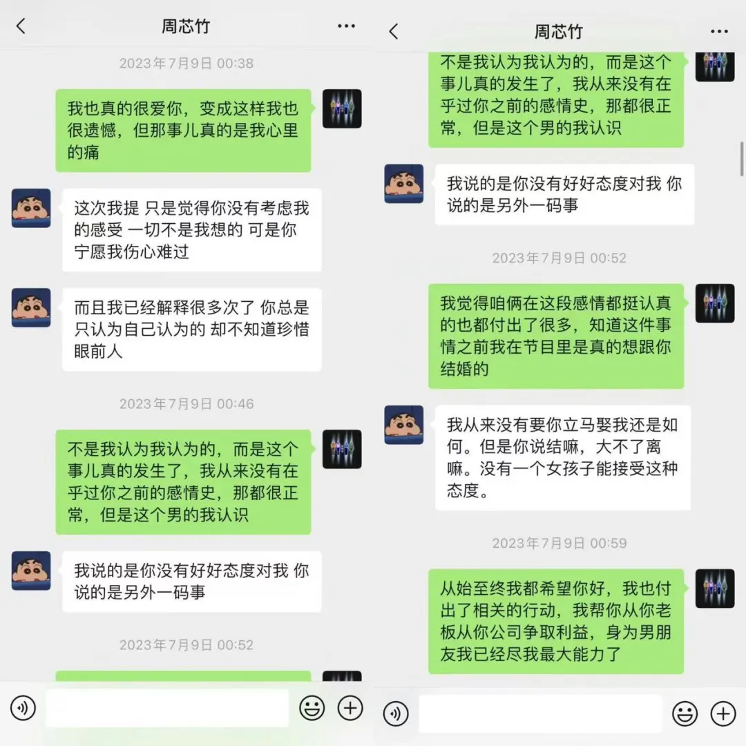 还表示,自己跟周芯竹没有共同话题,各自的追求也不同,唯一能聊的就一个话题,周芯竹还不感兴趣。