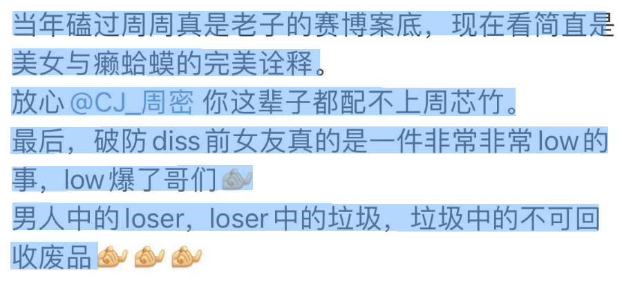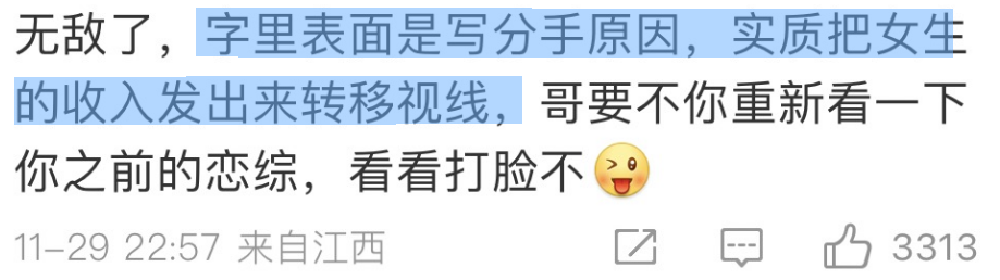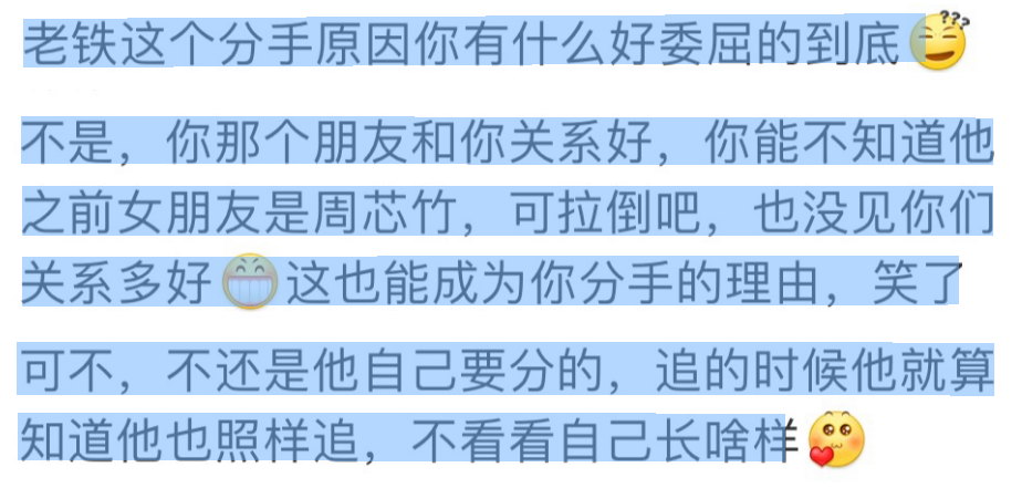 但分手的原因是“周芯竹的某段男女关系涉及到自己的朋友”这一点难以令大家信服,还被认为暴露了他的小心眼👇