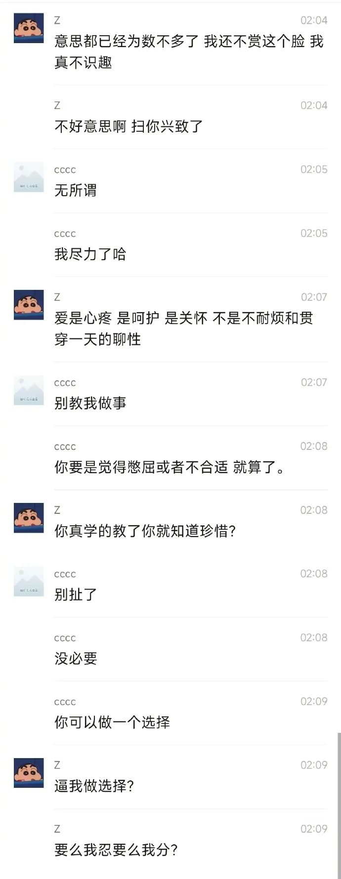 聊天记录一发,原本让人迷惑的分手原因也逐渐清晰: