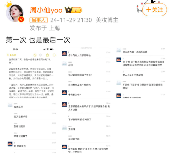 女方周芯竹,是位美妆博主,社媒的昵称是@周小仙yoo。