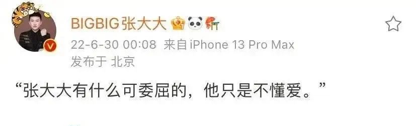 #后来张大大还调侃,自己有什么委屈的,只是不懂爱。