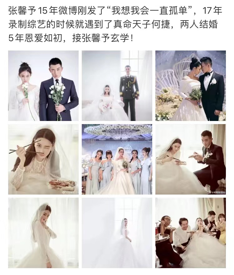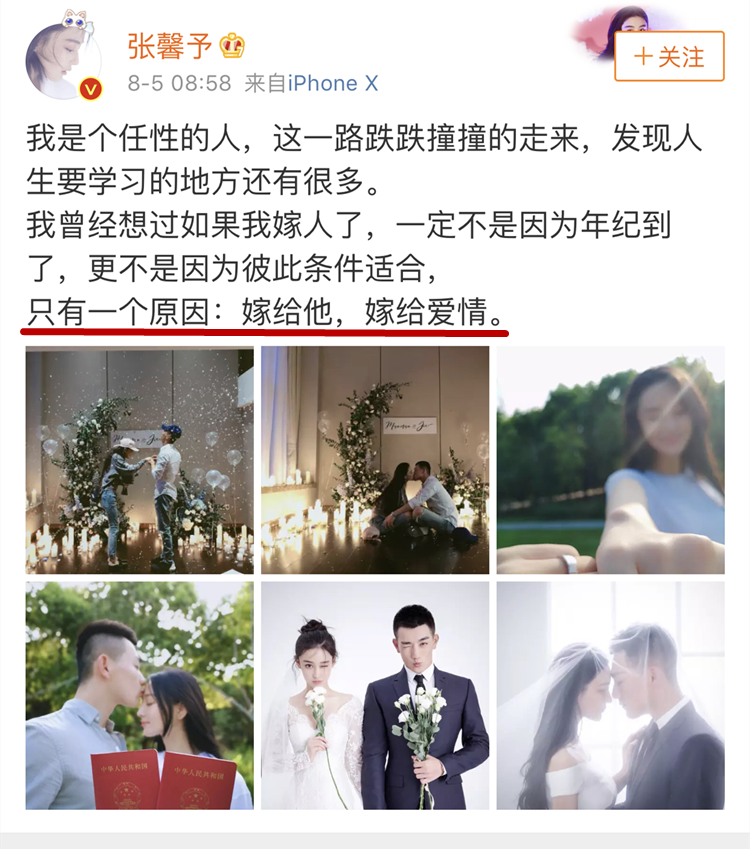 过了一年,张馨予突然在微博宣称自己嫁给了爱情,男方正是何捷⬇️