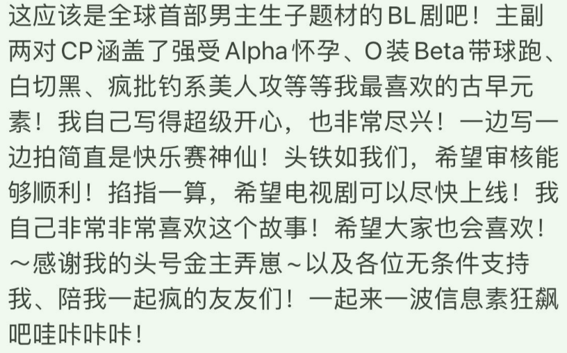 不管是题材,还是选角,到底是全球第一部ABO题材,这部剧的关注度已经有了。