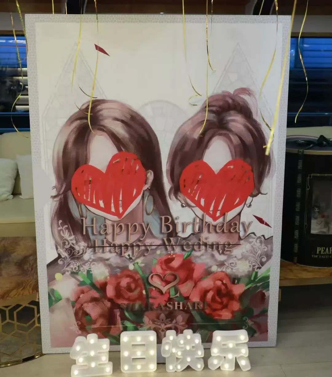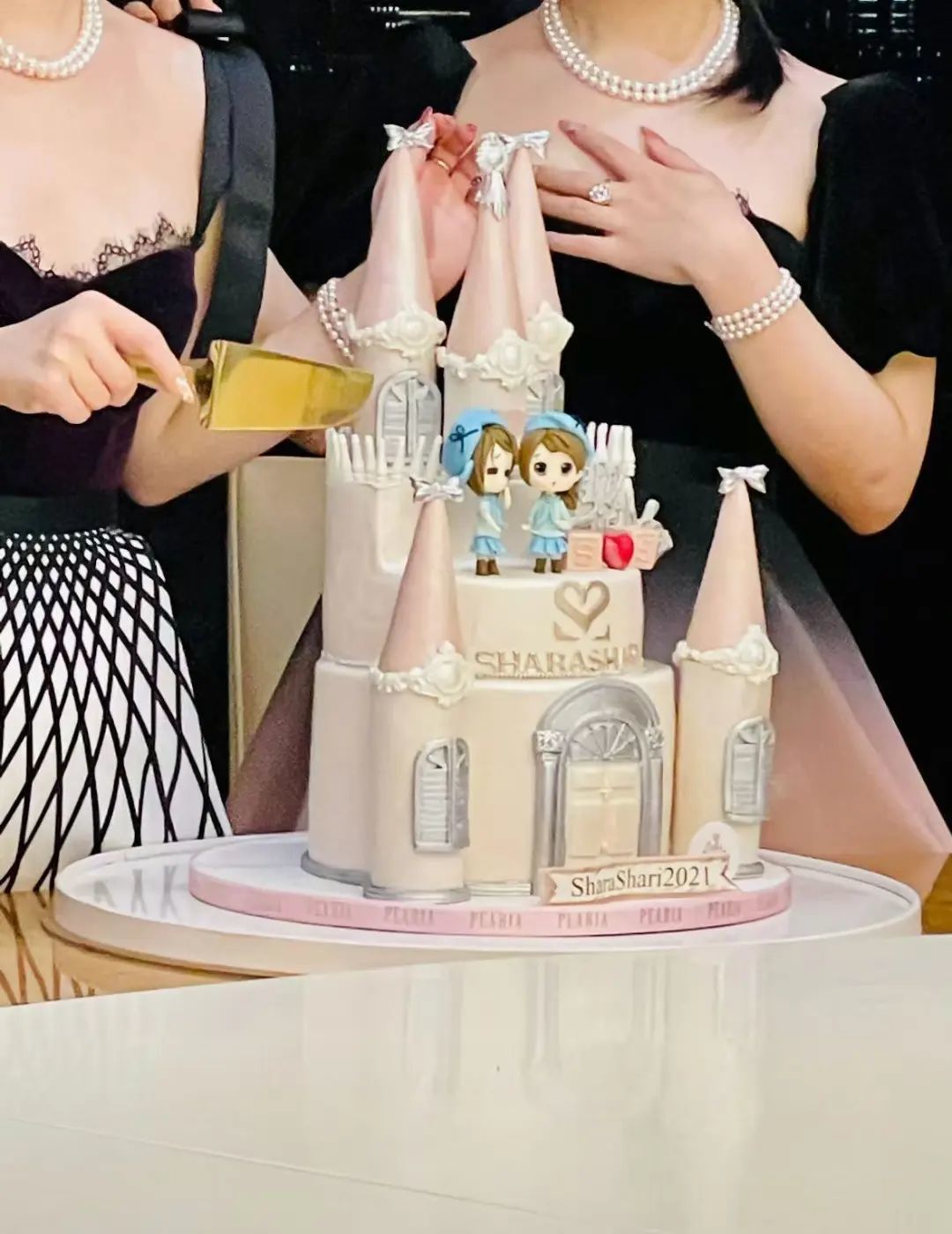 生日宴会和生日蛋糕上写着的「Shara&Shari」两个名字,