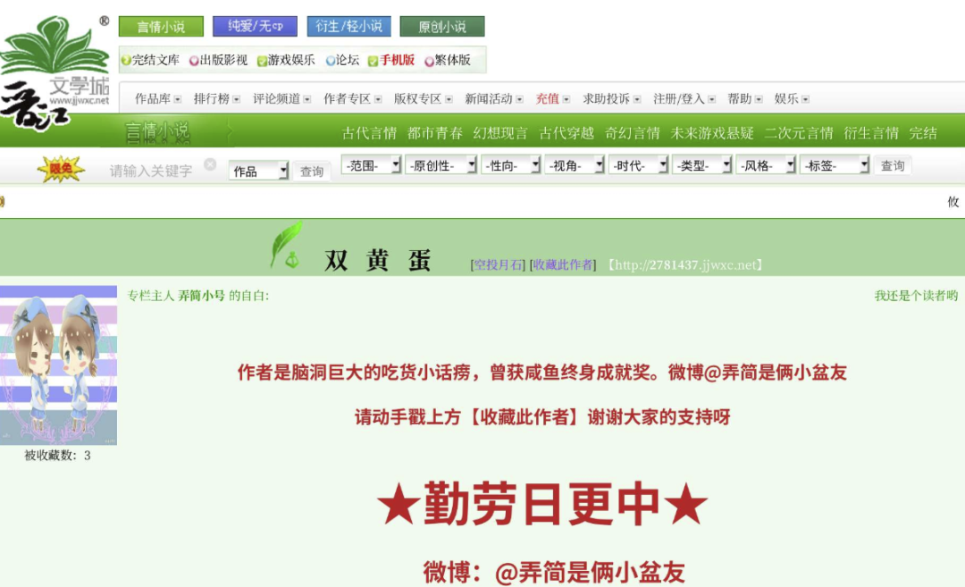 这才暴露受访者的真实身份:网络文学作家弄简。