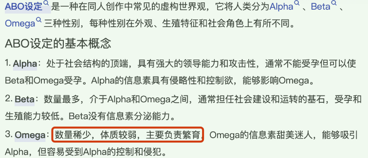 对,你没看错,就是ABO设定里能够释放信息素负责繁育的Omega👇