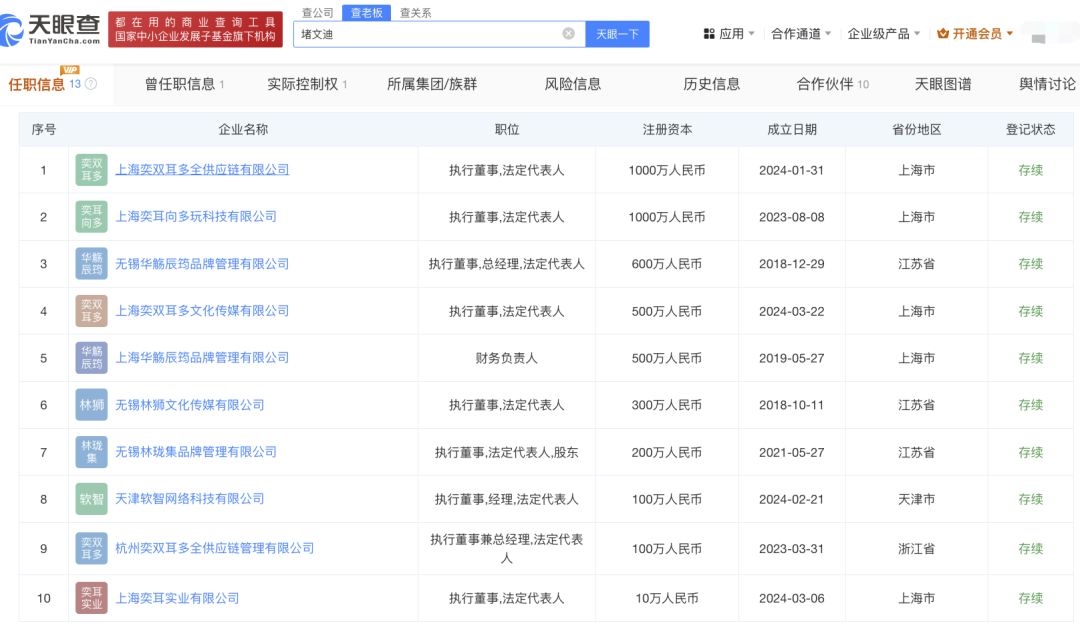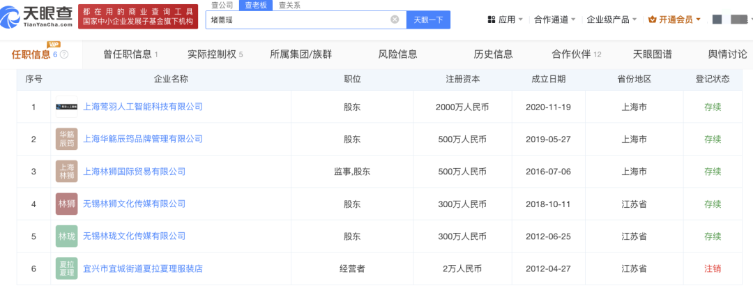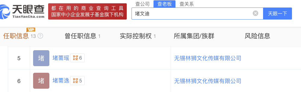 在她们公司的任职信息中,橘看到了一个跟她俩姓氏相同的名字——堵文迪,大概率是二位的亲戚。