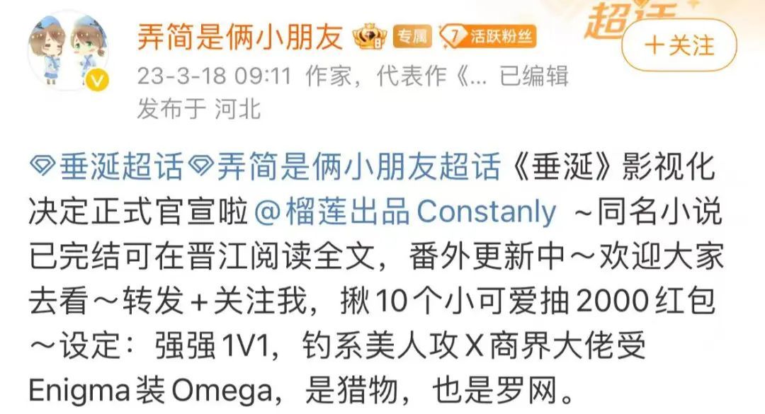 2023年就写出了《垂涎》并官宣影视化的消息⬇️