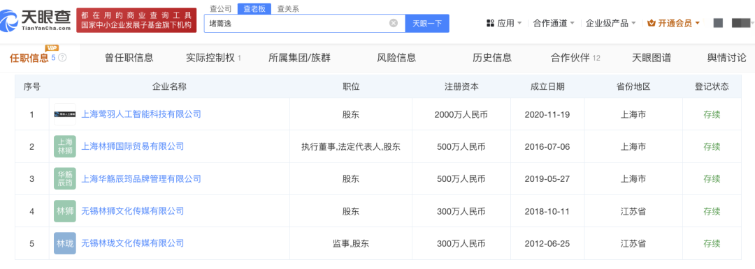 据天眼查显示二位名下有5家公司⬇️