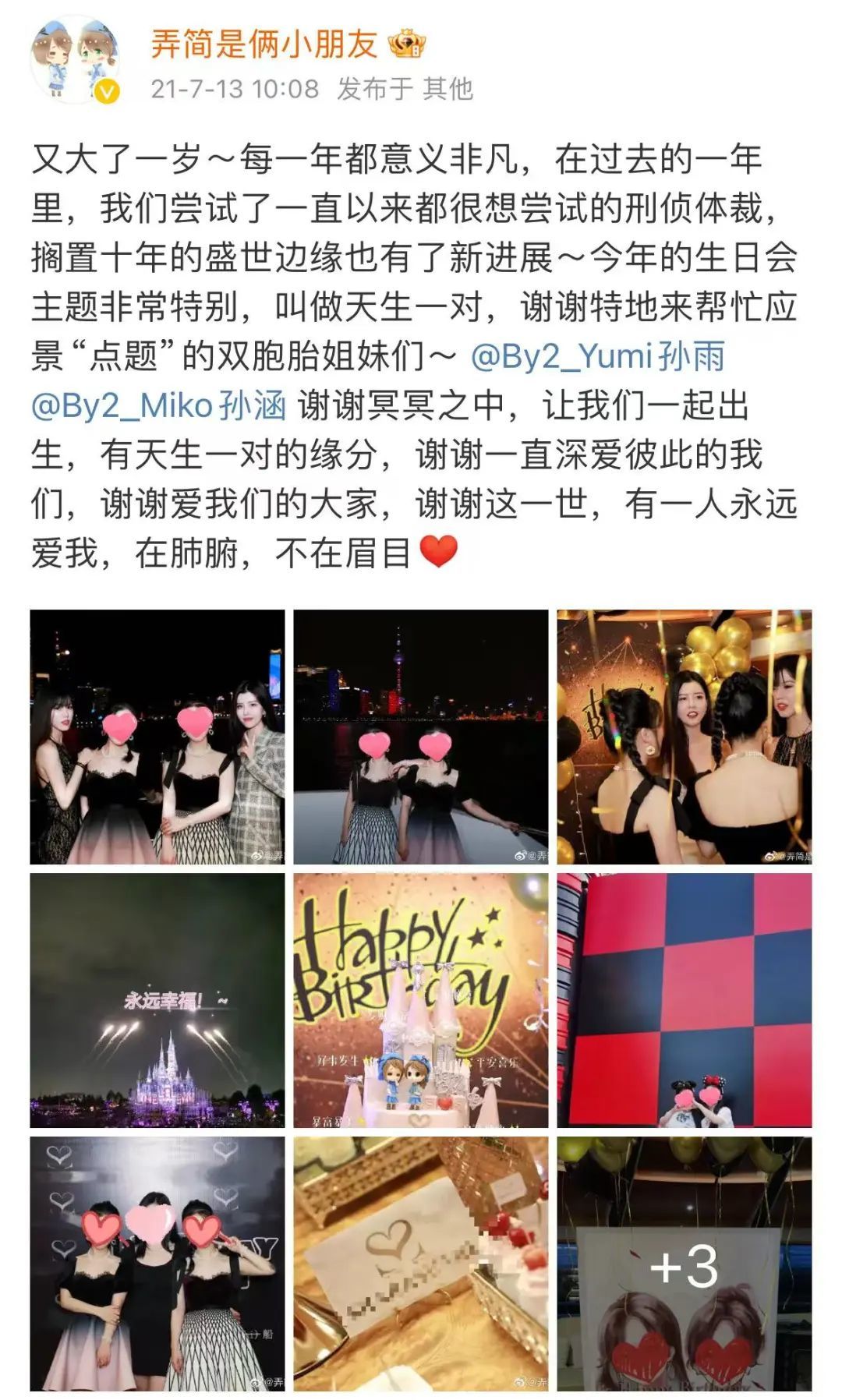 2021年她俩办了一个双胞胎主题的生日会,