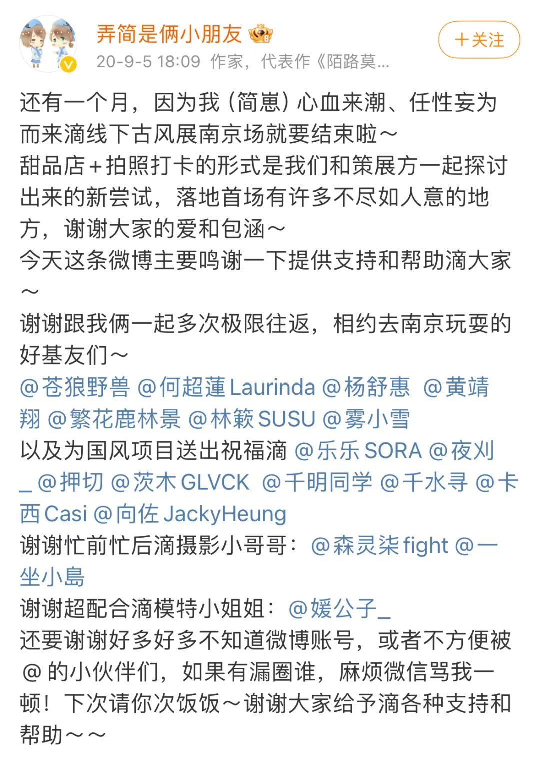 弄简是一对双胞胎姐妹,写作账号,社交账号都是两个人共用。