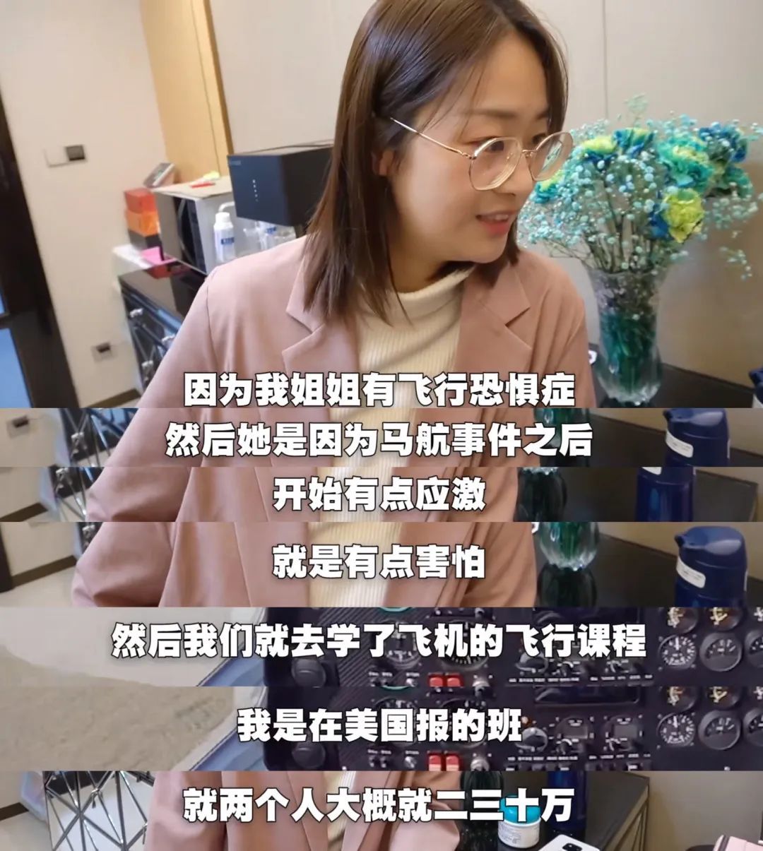 因为双胞胎中的姐姐有飞行恐惧症,两个人就自费学了飞机的飞行课程,花费在20-30万左右⬇️