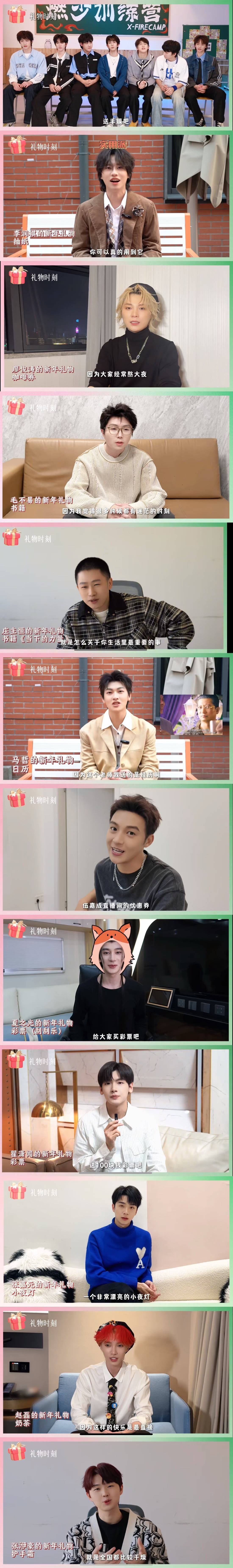 实用派中,燃少训练营的少年们为大家挑选手膜作为礼物,气运联盟李润祺则送出一箱抽纸,这种介乎于抽象与实用之间的感觉是怎么回事?黄盼盼送出自己的亲笔手工画一副,既宠粉又满足了收藏实用性;廖俊涛送出咖啡券若干,为「牛马」提神醒脑操碎了心,只能说最懂打工人的礼物出现了;毛不易与庄主恒不约而同都选择了送出对自己有帮助的书籍,鼓励大家用知识武装自己的精神,才是用之不竭的力量来源;气运联盟马哲送出一套日历,踏踏实实过日子才是正经事;X玖少年团伍嘉成送出自己直播间限定新年优惠券一张,《王牌新主播》优秀主理人的直播间必须是新年购物目的地;X玖少年团夏之光、翟潇闻都选择了彩票刮刮乐,新年好彩头给大家安排上了;新晋大学生张嘉元则送出小夜灯一台,X玖少年团赵磊送出奶茶数杯,张洢豪送出护手霜,为冬季的生活增添一点温暖甜蜜的小确幸。