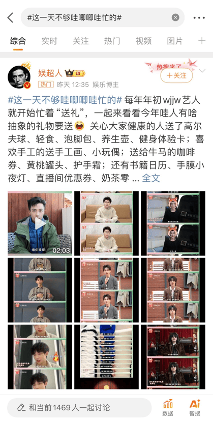 又到了一年辞旧迎新的跨年季,哇唧唧哇娱乐从12月30日起就逐步释出一波波新年动作——从观众期盼已久的影视剧《难哄》OST官宣,到哇唧唧哇每年的保留节目「新年的第一份礼物」回馈粉丝环节,哇唧艺人的跨年接力直播......一整套新年活动「组合拳」下来,不但满足了粉丝和爱豆一起过新年的愿望,更是斩获了一系列微博热搜,连网友辣评#这一天不够哇唧唧哇忙的#的话题,都冲上了微博热搜主榜TOP19,文娱热搜榜TOP11。网友纷纷感叹道:“新年用心了,整花活还得看哇唧唧哇!”