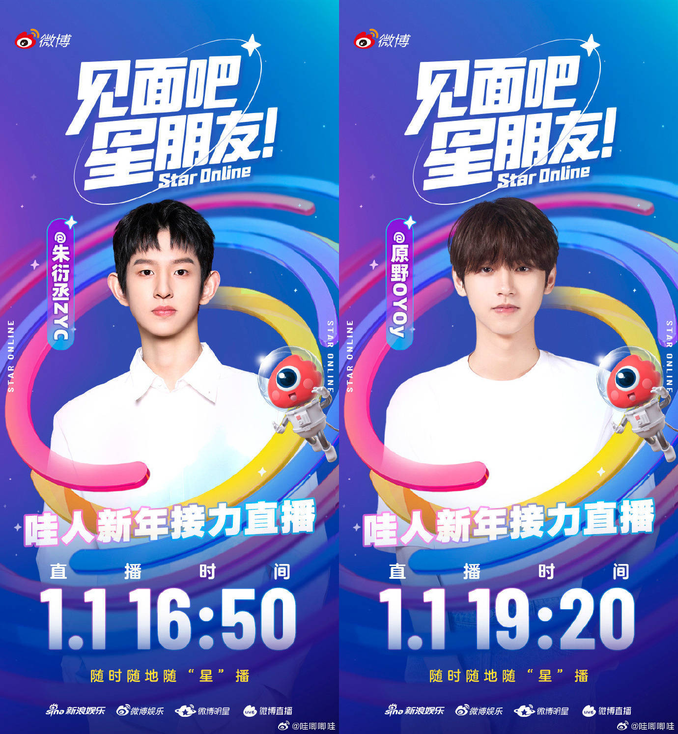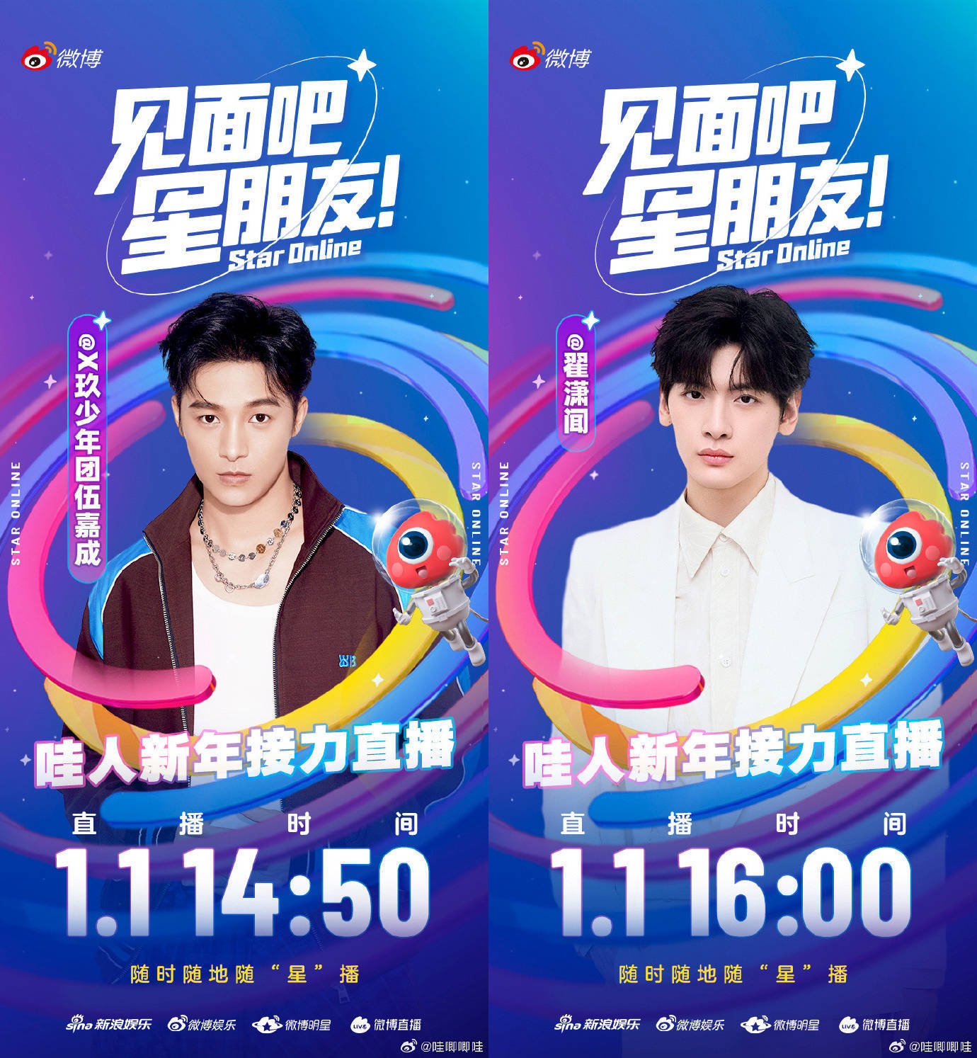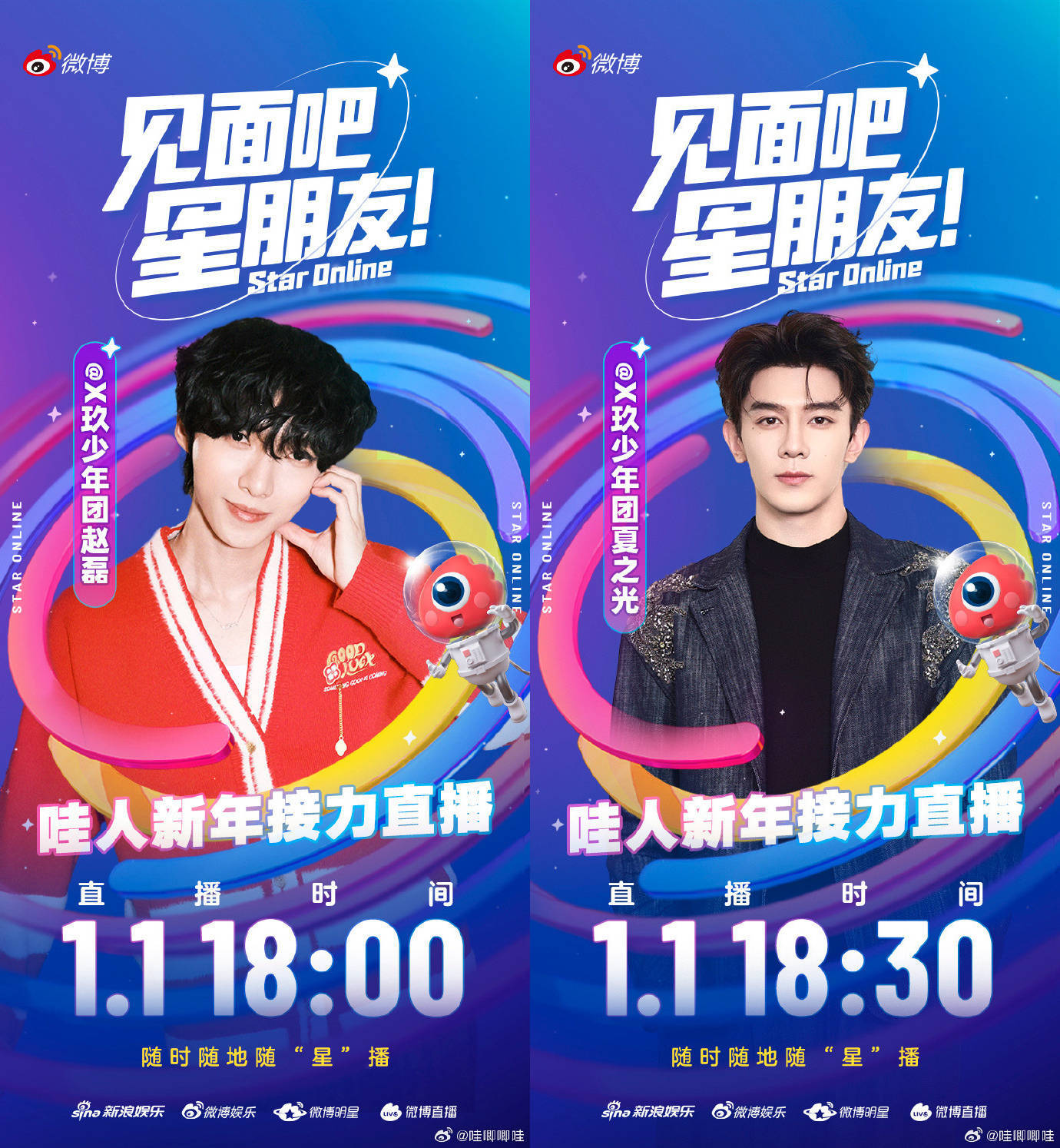 你以为送出新年好礼就完了?哇唧唧哇还准备了12场不间断直播接力活动,给粉丝们一场和爱豆共度的元旦佳节。