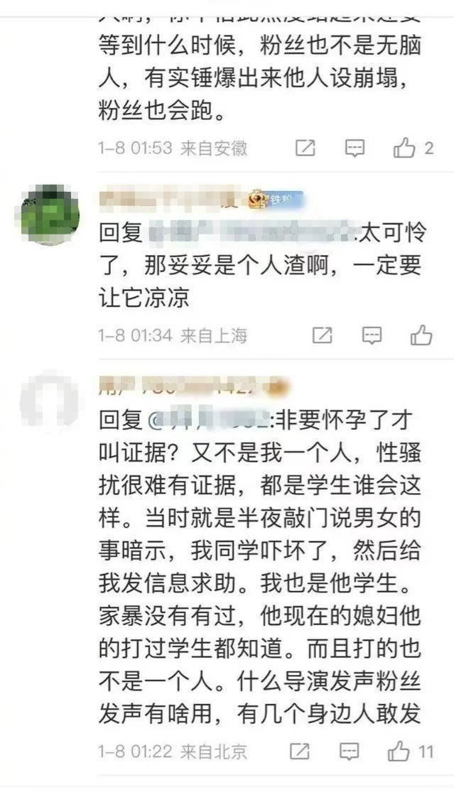 这名小演员针对网友的质疑,坦言,“非要怀孕了才叫证据?又不是我一个人,性骚扰很难有证据!当时就半夜敲门说男女的性暗示,给我同学吓坏了!他现在的媳妇他打过的学生都炸掉!”