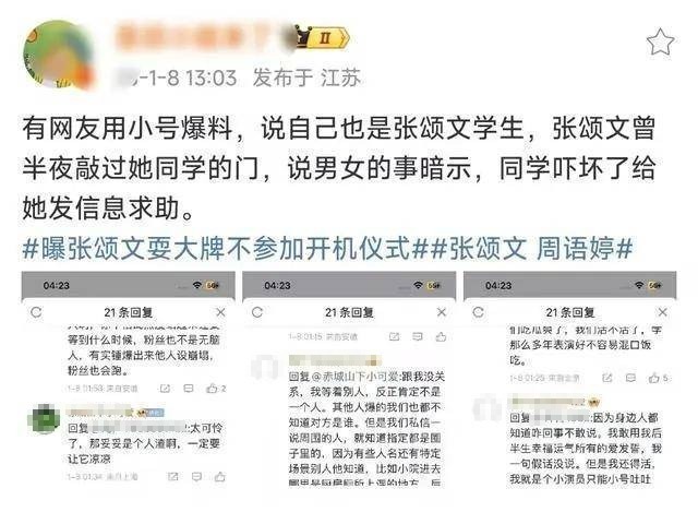 1月8号,知名八卦博主放出一则评论区猛料,是关于张颂文疑似深夜去敲女学生的房门,并且暗示一些男女之事的瓜。