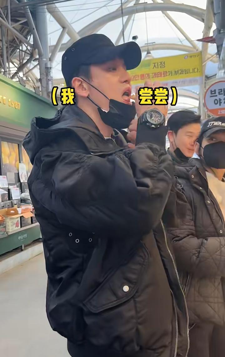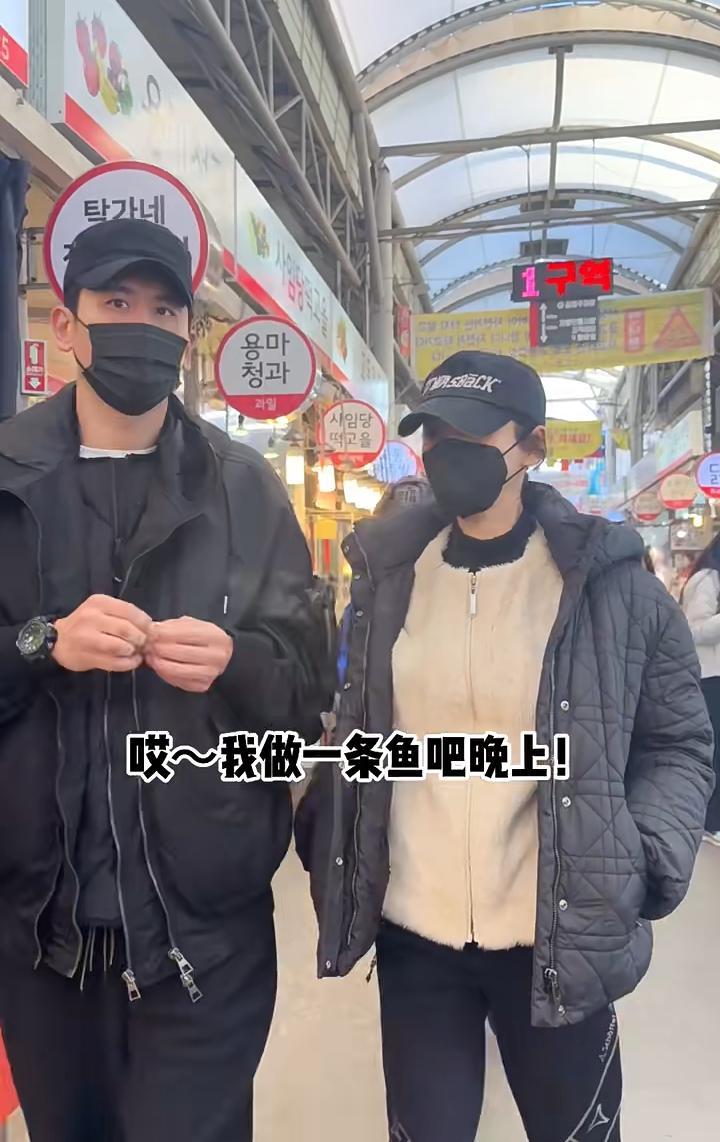 韩国菜市场的商贩也跟我们中国一样,有免费品尝的待遇,于晓光秋瓷炫这对跨国夫妻是一点也没有客气,看到什么都要脱下口罩来一点。