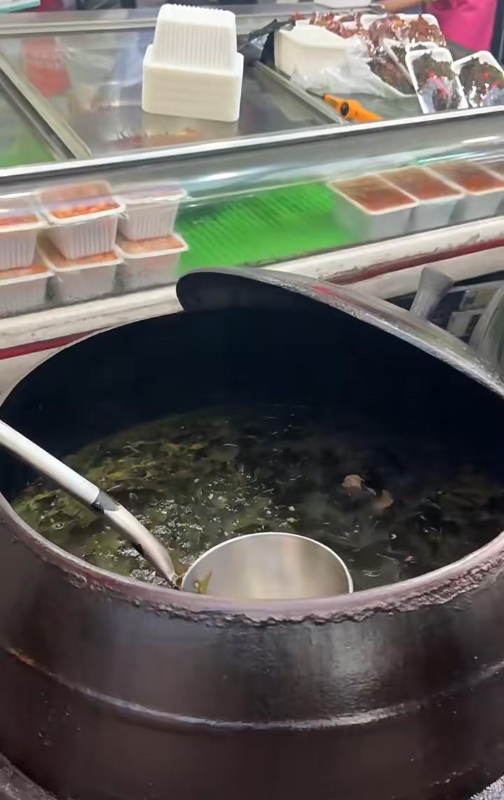 ,实际上人家的各类美食并不少的呢。有各种口味的年糕,米肠,还有特制铁锅做的辣牛肉汤,海带汤等等,光看着都要流口水了。