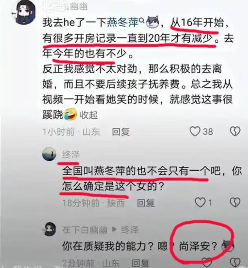 有位黑客扒出了那些年燕冬萍与其他男子频繁出入酒店的信息,称她私生活混乱。
